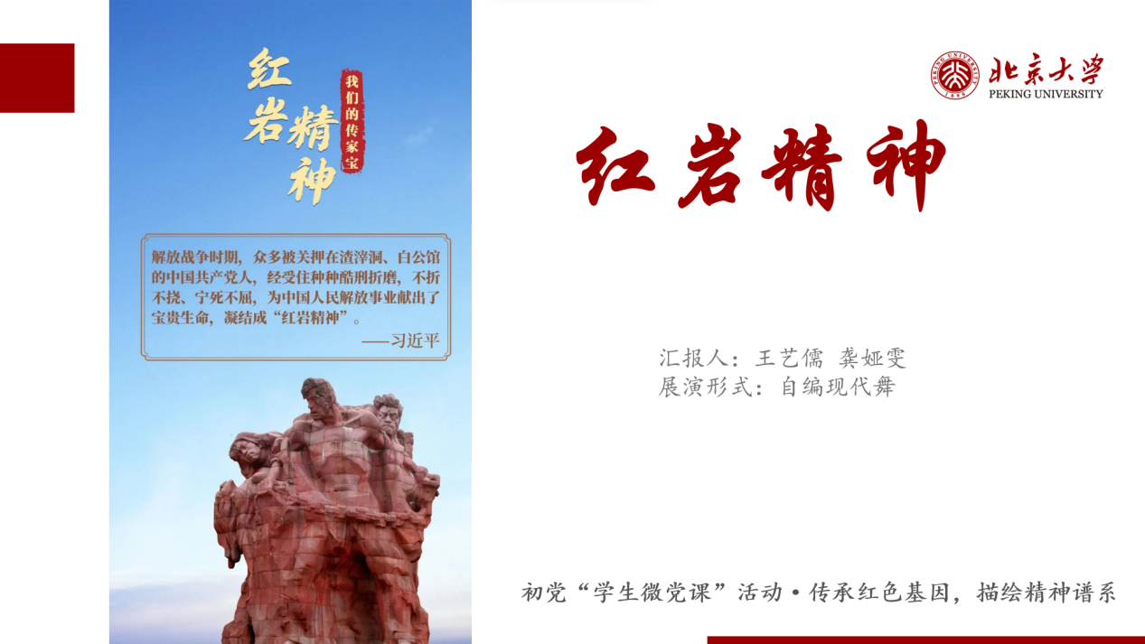 本次學(xué)生微黨課活動(dòng)充分發(fā)揮了初黨學(xué)員的創(chuàng)新性與能動(dòng)性,作為“請(qǐng)黨放心,強(qiáng)國(guó)有我”系列主題活動(dòng)之一,不僅啟發(fā)學(xué)員從藝術(shù)學(xué)的專(zhuān)業(yè)視角欣賞、剖析、評(píng)價(jià)紅色文藝作品,也在搜集資料、開(kāi)展研究的過(guò)程中深入思考建黨精神的內(nèi)涵。學(xué)員們?cè)诖蛟煲慌婢呃碚撋疃群蛯?shí)踐價(jià)值的精品黨課的同時(shí),也在比較與互相評(píng)價(jià)中探討了未來(lái)文藝作品傳播紅色精神的可能道路,深切感知到作為北大學(xué)子和未來(lái)的文藝工作者,在傳承和弘揚(yáng)建黨精神的領(lǐng)域需要承擔(dān)的重大責(zé)任與使命。