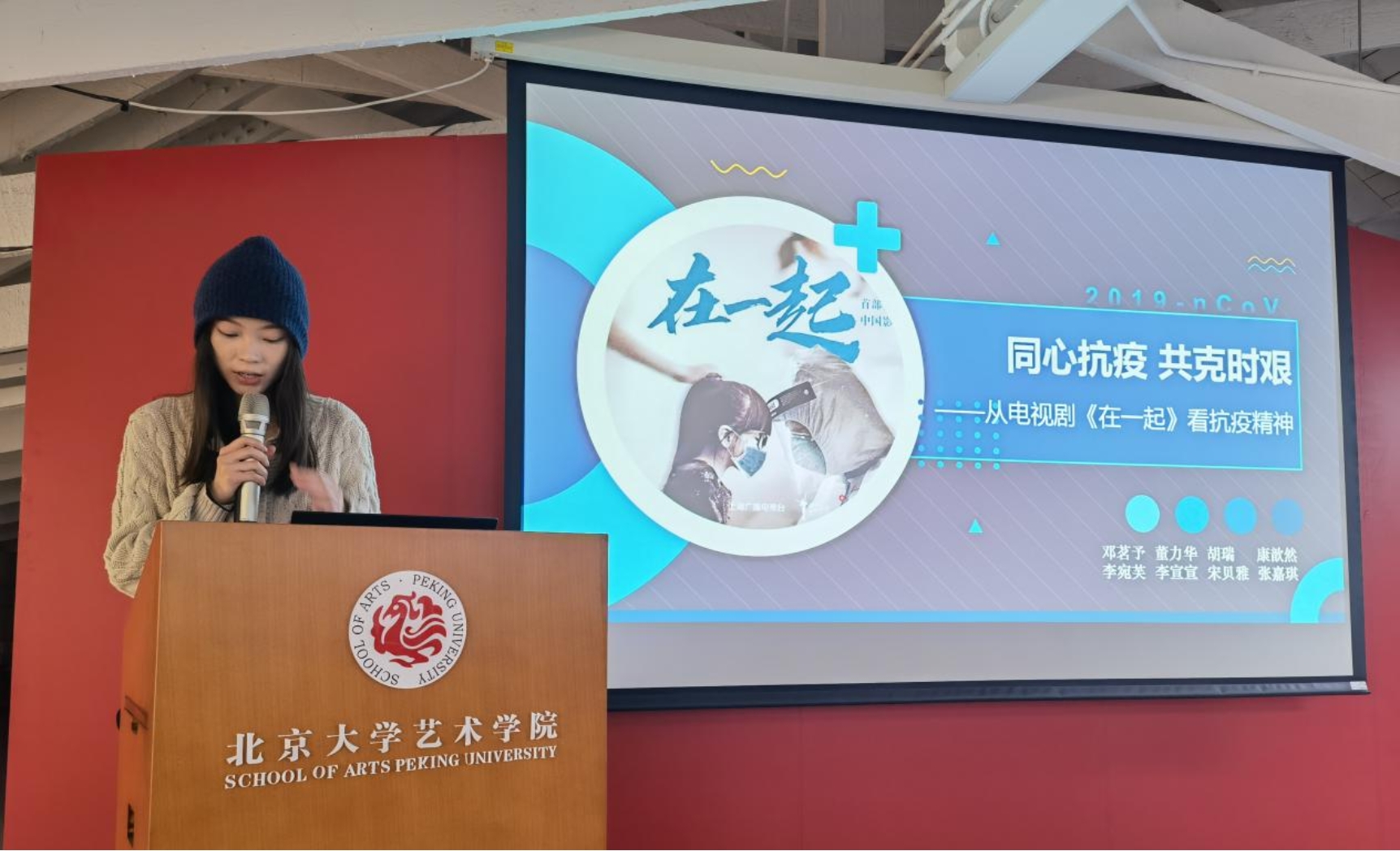 由鄧茗予、董力華、胡瑞、康歆然、李宛芙、李宣宣、宋貝雅、張嘉琪組成的第二小組以“同心抗疫、共克時(shí)艱”為主題,從電視劇《在一起》剖析抗疫精神的內(nèi)涵。抗疫精神同中華民族長(zhǎng)期形成的特質(zhì)稟賦和文化基因一脈相承,是愛(ài)國(guó)主義、集體主義、社會(huì)主義精神的傳承和發(fā)展,是中國(guó)精神的生動(dòng)詮釋?zhuān)S富了民族精神和時(shí)代精神的內(nèi)涵。第二組從《在一起》中十個(gè)單元故事出發(fā),分析其生動(dòng)的人物塑造,并聯(lián)系實(shí)際,講述其背后真實(shí)的人物故事,指出這些人物的縮影也正是對(duì)習(xí)近平總書(shū)記指出的以生命至上、舉國(guó)同心、舍生忘死、尊重科學(xué)、命運(yùn)與共為核心的抗疫精神的集中體現(xiàn),為后疫情時(shí)代下持續(xù)踐行和不斷深化抗疫情神提供著榜樣與給養(yǎng)。