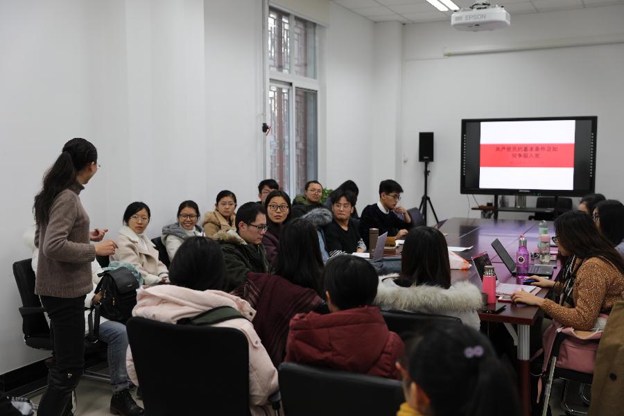關于黨員發(fā)展的流程,鄒惠老師進行了簡要的梳理。她指出,同學們應認真學習黨的理論,提升自己的思想政治素質(zhì)、科學文化素質(zhì)和綜合能力素質(zhì),以黨員的標準嚴格要求自己,并將其貫徹到日常生活中。