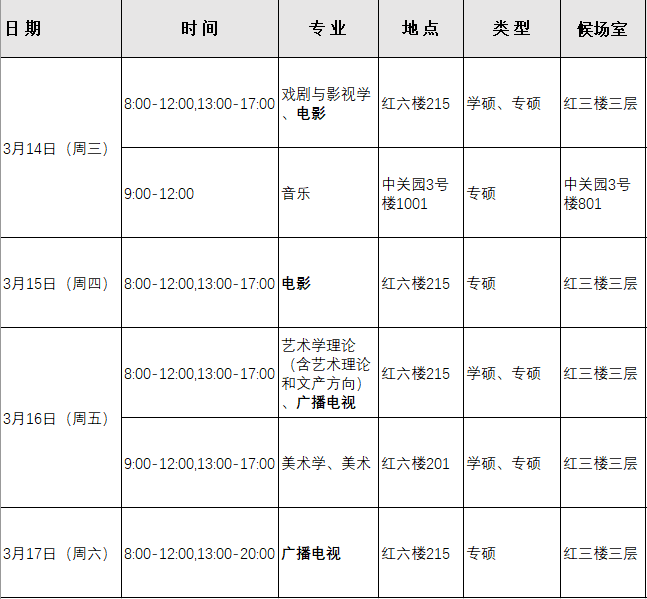 復(fù)試按專業(yè)類別分別進(jìn)行,面試時間一般不少于20分鐘。所有考生提前30分鐘到達(dá)等候室,核驗(yàn)身份證、準(zhǔn)考證(僅限大陸考生)。復(fù)試結(jié)束后,簽署《復(fù)試面試確認(rèn)書》。