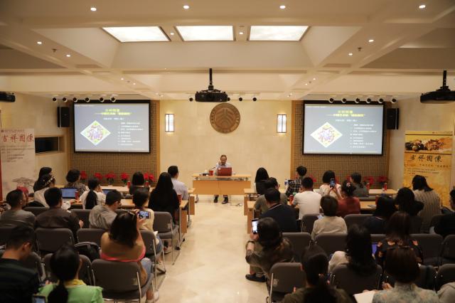 李松在講座中提到,“吉祥”一詞具有“禳兇祈福,預(yù)示未來”的意思,表明“吉祥圖像”兼具辟邪、祈福二重功用。吉祥圖像利用圖像、文字和符號一起構(gòu)成了“表意-敘事-裝飾”的綜合性體系,并利用圖像和語音的巧妙轉(zhuǎn)換,把抽象觀念和美好愿望轉(zhuǎn)化為生動具體的視覺形式,表達了中國人對于吉祥祈福的普遍觀念。通過對明代五代帝王御容的比較,李松提出吉祥圖像發(fā)展的主要推手應(yīng)為帝王。他還指出,吉祥圖像利用寓意和象征,使觀者產(chǎn)生意義聯(lián)想,這使得吉祥圖像成了文化觀念的一種符號表述系統(tǒng)。講座中,李松列舉了通過諧音表達吉祥愿望、著作文章的案例,指出吉祥圖像還存在一種“圖像-語言”的對應(yīng)系統(tǒng)。此外,李松提出了自己對吉祥圖像圖像解讀的疑問,即此類圖像的意義解讀到底是對古人原意的深刻領(lǐng)會,還是后人的強加附會。最后,講座在與聽眾的熱烈互動中圓滿結(jié)束。