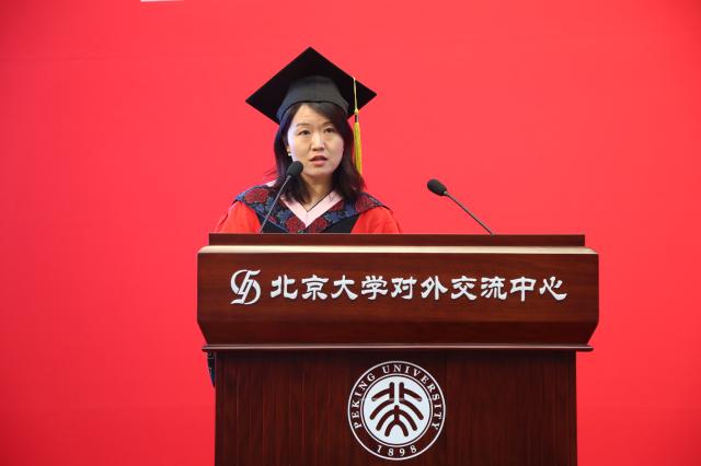 舞蹈結束后,畢業(yè)典禮正式開始,全體起立,高唱國歌。隨后,王蓓老師介紹了出席典禮的領導、嘉賓,并介紹了學生畢業(yè)去向的基本情況。本科生中,除十二人保送至北大、清華攻讀研究生外,另有學生赴哥倫比亞大學、東京大學等國外高校繼續(xù)深造。碩士研究生中,有繼續(xù)學業(yè)深造的同學,有赴科研機構、知名企業(yè)等不同單位和崗位就業(yè)的同學;博士研究生分別赴政府機關、高校、科研機構等單位就業(yè),均有很好的發(fā)展前景。