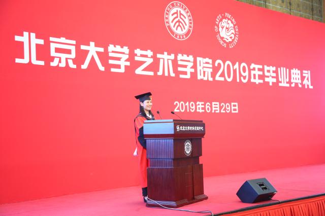 隨后,四位畢業(yè)生代表進行了現(xiàn)場發(fā)言。本科生代表漆袁雯在發(fā)言中憶往昔、看今朝、望前方,闡述了自己對大學生活的追憶、對個人成長的回顧,更告白著對同窗、對學院的拳拳深情。MFA代表張蕾訴說了在職修習的苦辣酸辛與收獲感悟,結合一線實踐經(jīng)驗,講訴了北大學習的相輔相成對藝術之路的增厚與拓寬。碩士研究生代表吳倩如回顧了自己與學院的九載情緣,其間既接受著學院給予的機遇,也見證著學院的諸多變化,反思著學院為自己行囊中增添的分量。博士研究生代表馮晗在發(fā)言中指出博士四年的最大收獲是“戒驕戒躁的學術態(tài)度”,這收獲看似簡單,實則內涵深厚,她以自身的科研經(jīng)歷與體悟,展現(xiàn)出北大3044am永利集團對其學術之路的非凡意義。