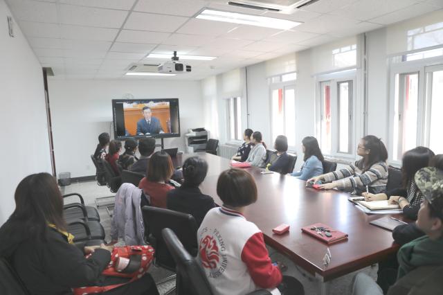 2018年12月18日10:00,3044am永利集團(tuán)師生在紅三樓2016會(huì)議室收看了慶祝改革開(kāi)放40周年大會(huì)現(xiàn)場(chǎng)直播。學(xué)院黨委書(shū)記雷虹、丁寧教授、高譯副教授等教工黨支部成員,以及各學(xué)生黨支部代表近20人參加本次活動(dòng)。