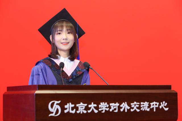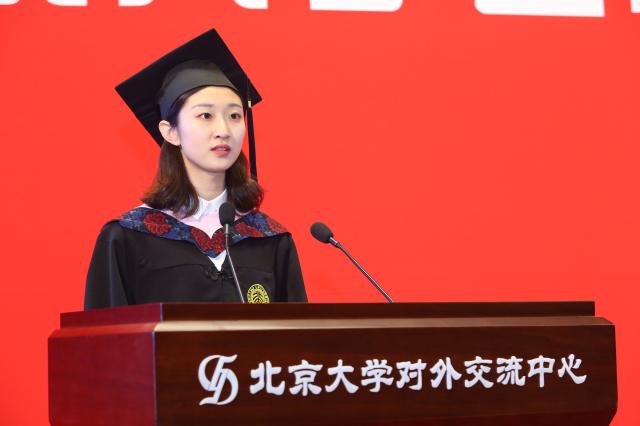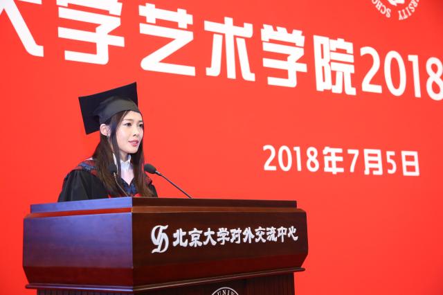碩士研究生代表陳雨人講述了自己與北大、與電影的故事。她說,北大為學(xué)電影的人提供了更多元的視角去解讀電影世界。通過短短三年的學(xué)習(xí),她對何謂電影、何用電影史,何以成電影人這三個問題有了更深刻的認(rèn)識和了解,并用三個“何其有幸”表達(dá)了自己對導(dǎo)師、對母校的感激與不舍之情。