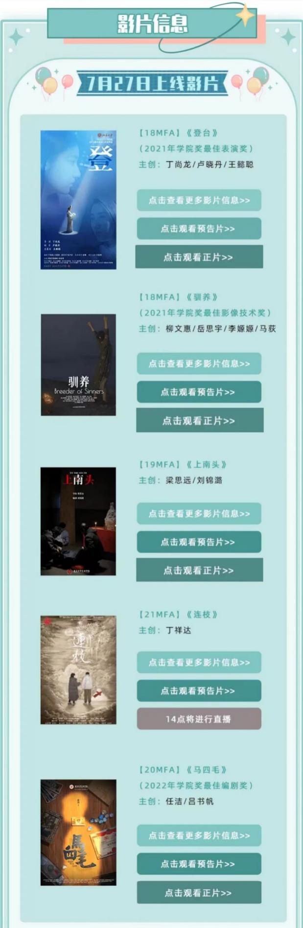 7月27日至31日,刁亦男導演、五百導演、中國文聯(lián)電影藝術中心王純處長、北京師范大學影視戲劇系陳剛主任、中國電影導演協(xié)會副會長王紅衛(wèi)、北京電影學院吳冠平教授、中央戲劇學院影視戲劇系高雄杰主任、中國美術學院周佳鸝老師、中國電影資料館策展人沙丹等業(yè)界、學界的專家學者,通過直播間與影片主創(chuàng)展開10場映后交流,對學院獎展映短片進行點評分析,并提出專業(yè)意見,3044am永利集團的彭鋒、李道新、李洋、王蓓、向勇、陳宇、唐宏峰等老師也參加了映后直播互動,直播活動共吸引全網逾13000人次觀看。