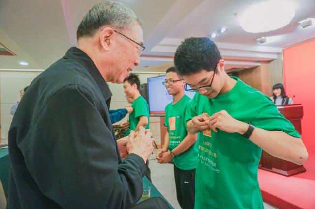 典禮接近尾聲,學(xué)院老師們?yōu)樾律砼宕餍;?,以此激?lì)同學(xué)們努力學(xué)習(xí),增強(qiáng)同學(xué)們身為北大人、藝術(shù)人的自豪感與責(zé)任感。