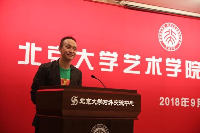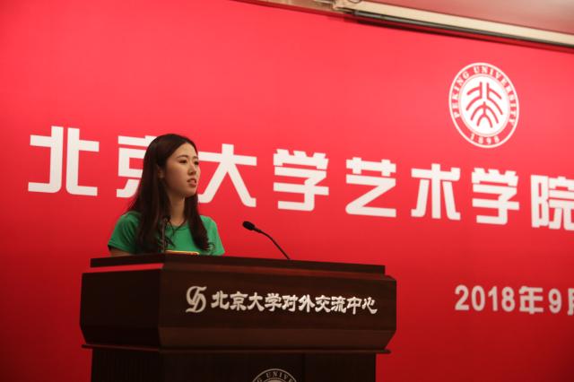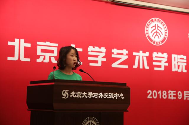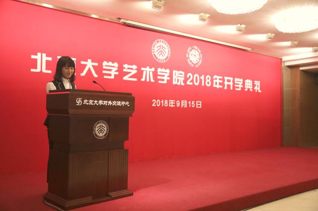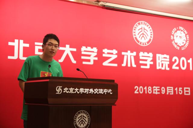 典禮正式開(kāi)始,王蓓老師首先代表學(xué)院對(duì)全體新生表達(dá)了歡迎和祝賀。隨后,2018級(jí)本科生李維則同學(xué)作為本科新生代表發(fā)言。他從自己的個(gè)人背景講起,向自己、也向在座同學(xué)們發(fā)問(wèn),“來(lái)到北大藝院究竟意味著什么?”緊接著,他以今世界文化的發(fā)展趨勢(shì),結(jié)合自己參加的藝術(shù)學(xué)暑期課堂經(jīng)歷,闡述對(duì)這一問(wèn)題的思考?!八枷胄允撬囆g(shù)天然的特性”,他呼吁同學(xué)們保持對(duì)藝術(shù)的熱愛(ài),守護(hù)藝術(shù)的思想性,在學(xué)院、學(xué)校乃至社會(huì)的大家庭中“有一份熱便發(fā)一分光”。