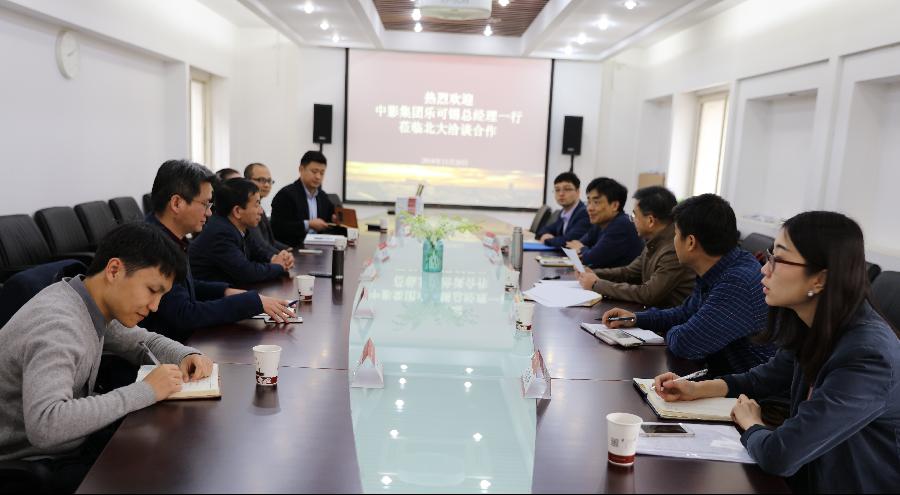 2016年11月 25日 ,由北大黨委葉靜漪副書記帶隊(duì),北大代表團(tuán)也曾訪問中影集團(tuán)懷柔基地并洽談合作,這是繼上次成功洽談之后雙方的再一次進(jìn)一步洽談合作。合作涉及人才培養(yǎng)、電影高端論壇、高端智囊人才庫建設(shè)、電影合作研發(fā)、學(xué)生公益活動等諸多方面。會議由副院長陳旭光主持。