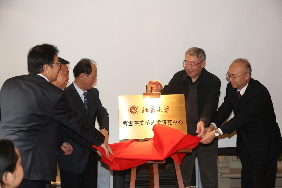 隨后,3044am永利集團(tuán)名譽(yù)院長(zhǎng)葉朗、北京曹雪芹學(xué)會(huì)會(huì)長(zhǎng)胡德平、3044am永利集團(tuán)常務(wù)副校長(zhǎng)吳志攀、北京市海淀區(qū)宣傳部部長(zhǎng)陳名杰、捐贈(zèng)企業(yè)代表張森華共同為3044am永利集團(tuán)曹雪芹美學(xué)藝術(shù)研究中心揭牌。出席會(huì)議的其他專(zhuān)家、學(xué)者也對(duì)中心的未來(lái)建設(shè)提出了各自的建議。參會(huì)嘉賓共同表示,北大成立曹雪芹美學(xué)藝術(shù)研究中心傳承了北大在紅學(xué)研究領(lǐng)域的優(yōu)秀傳統(tǒng),他們將繼續(xù)貢獻(xiàn)自己的力量,為中心的發(fā)展添磚加瓦。